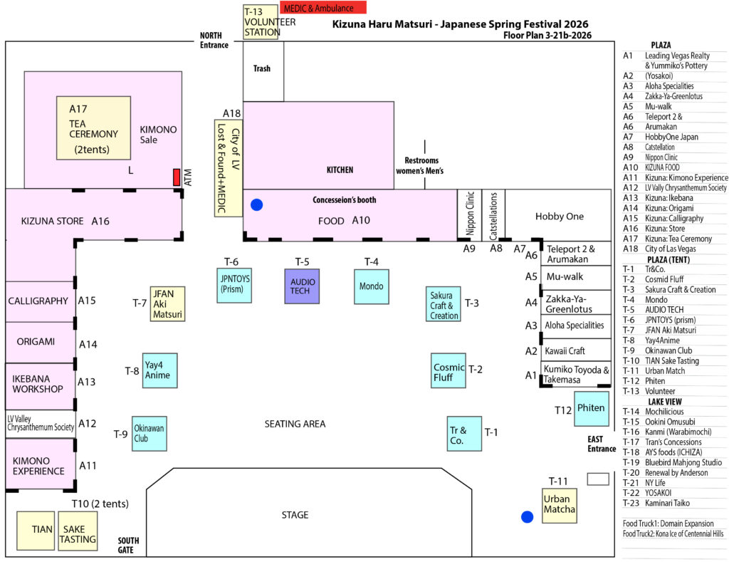 | 12:00 | VIP Speeches | Consul General Kotaro Otsuki CW Dina Titus, De’Liza representing Sen. Cortez Masto CM Horsford Director Sonny Vinuya | 表彰・スピーチ 大槻耕太郎 在サンフランシスコ総領事 ディナ・タイタス下院議員 他 |